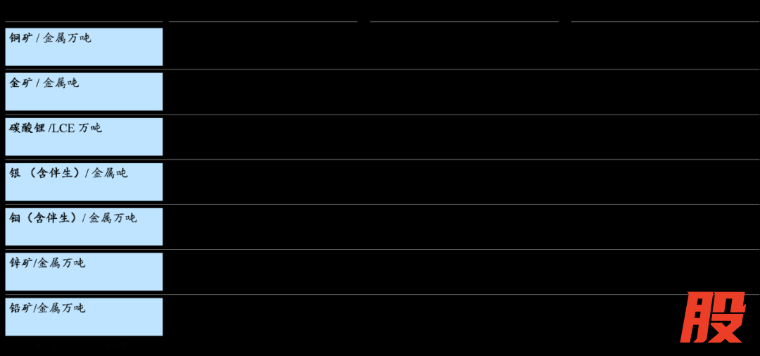 截至2024年底,按控股企业100%口径及联营合营企业权益口径计算,公司保有探明、控制及推断的总资源量为铜11,037.41万吨、金3,972.53吨、锌(铅)1,298.23万吨、银 31,836.01吨、锂(LCE)1,788.15万吨;其中,保有证实储量和可信储量:铜5,043.21万吨、金1,486.60吨、锌(铅)804.13 万吨、银3,253.10吨、锂(LCE)860.47万吨。按权益口径计算,公司资源量较期初增加铜1,063万吨、金486吨、银6,235吨。