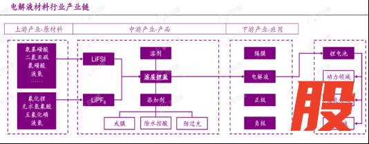 从锂电池整体的产业链来看,锂电池产业链上游除正负极材料之外,还包括隔膜、电解液等。电解液成本在锂电池中占比约在7%左右,通常由锂盐溶质、高纯度有机溶剂和必要添加剂在一定条件下按特定比例配置而成,锂盐、溶剂和添加剂在电解液中的质量占比分别为10%-12%、80%-85%、3%-5%。